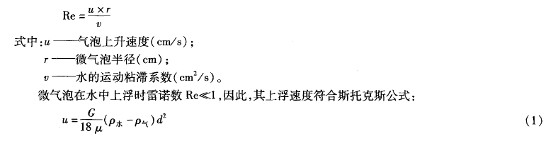 由于微气泡绝大多数直径小于50μm,因此,可按下式计算微气泡在上浮时的流态雷诺数Re,即